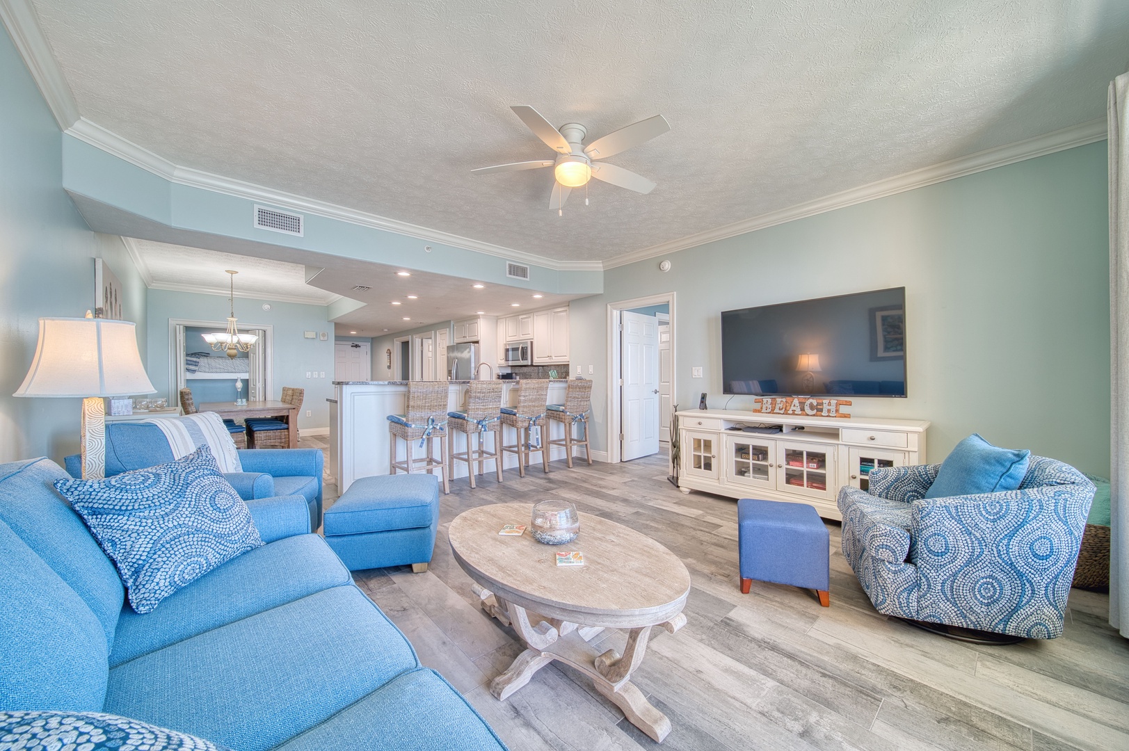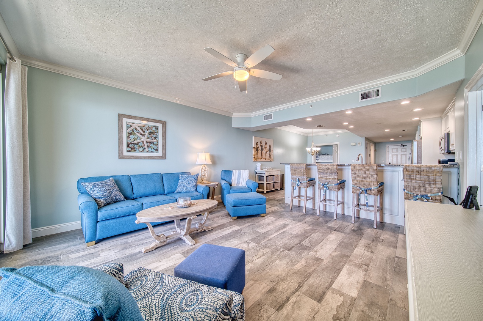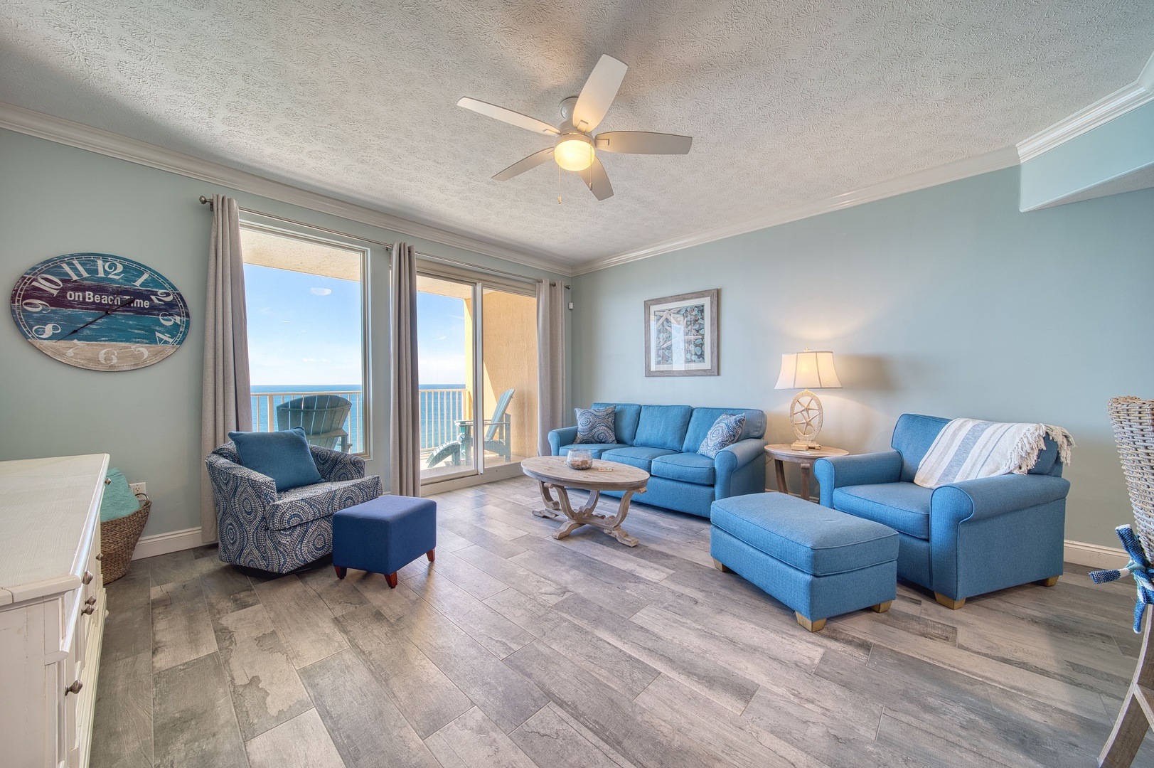 Take in the beauty and calm of this renovated condo's graceful design. Inside, each part of the condo caters to your comfort and enjoyment. Looking outside you have the best views in Panama City Beach – from the panoramic gulf view to the view looking west along ten miles of the Panama City Beach coastline.
