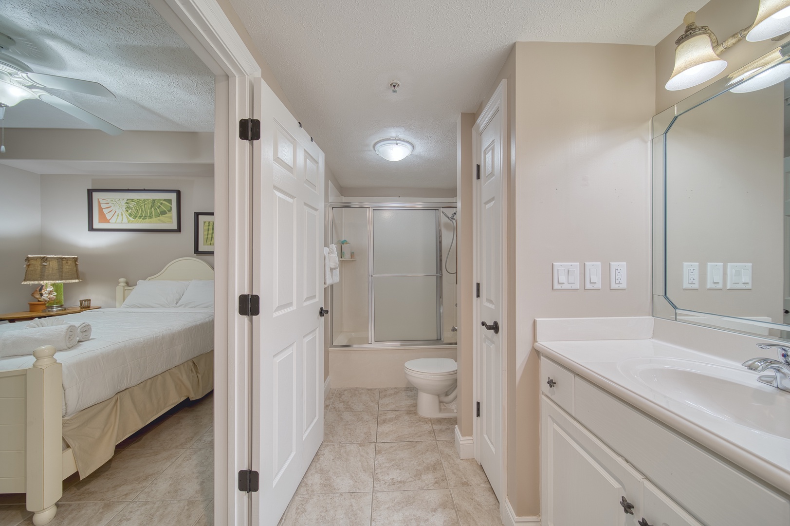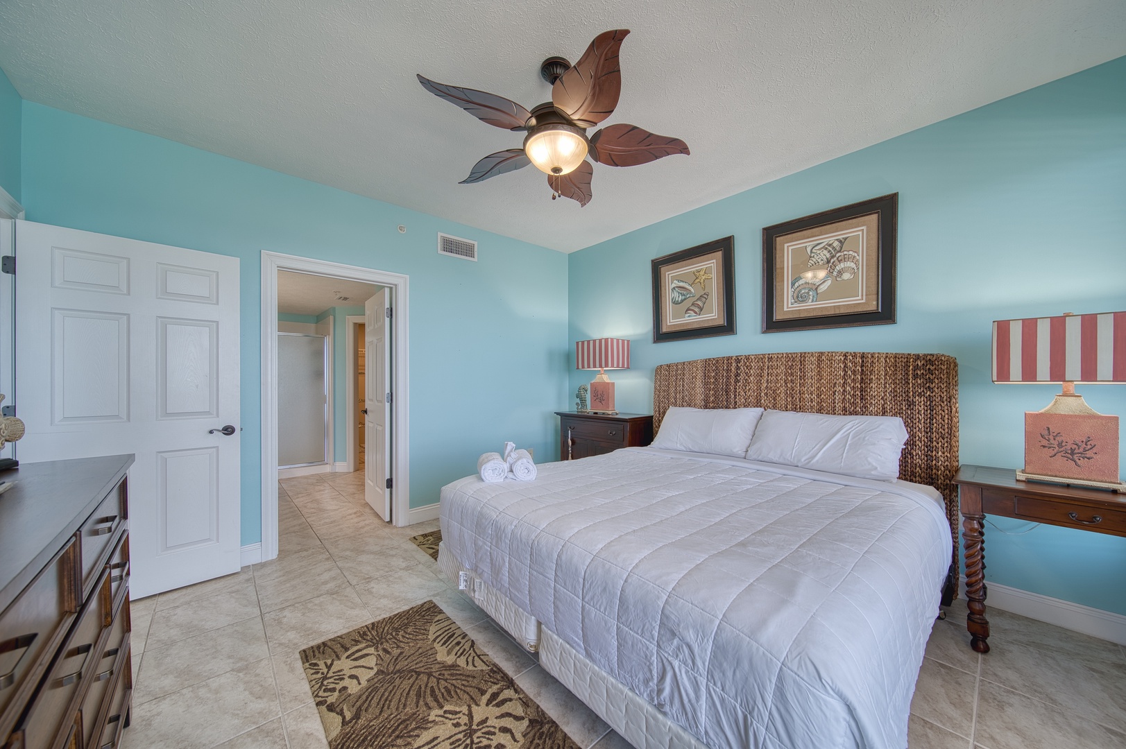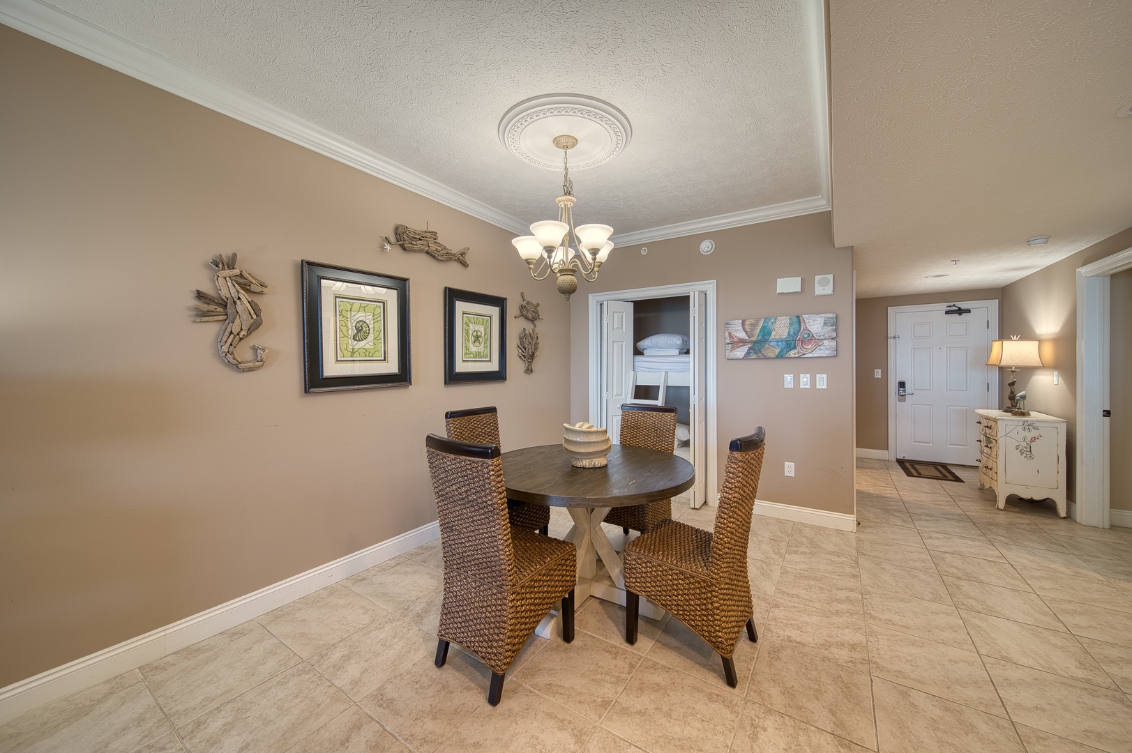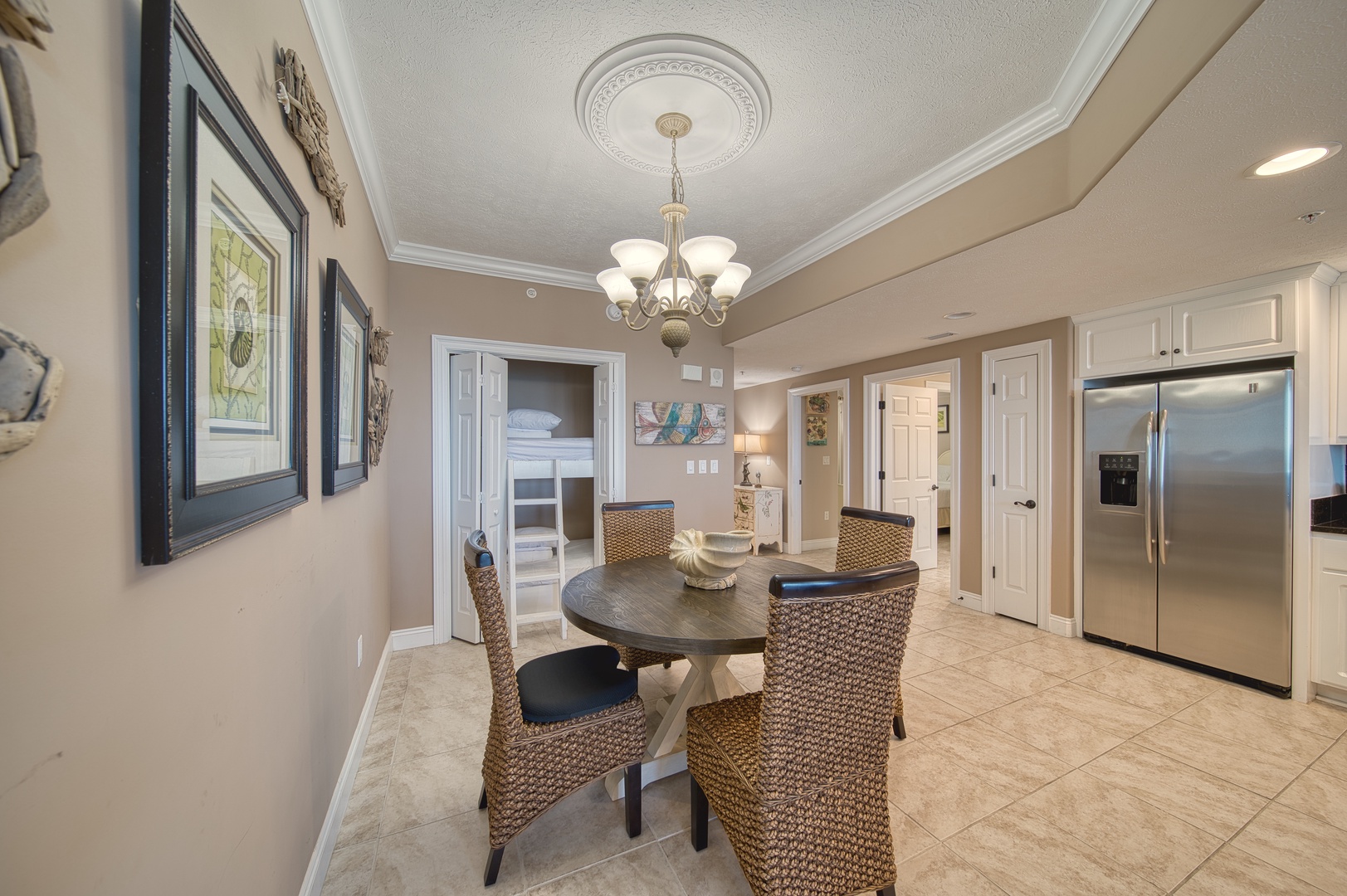 Perfect for up to eight guests, the primary bedroom has balcony access, a king-sized bed, ensuite bathroom and walk-in closet, a second bedroom with a queen-sized bed, a guest bath, and a fun twin-over-twin bunk area for the kids or extra friends, sofa sleeper in living area.