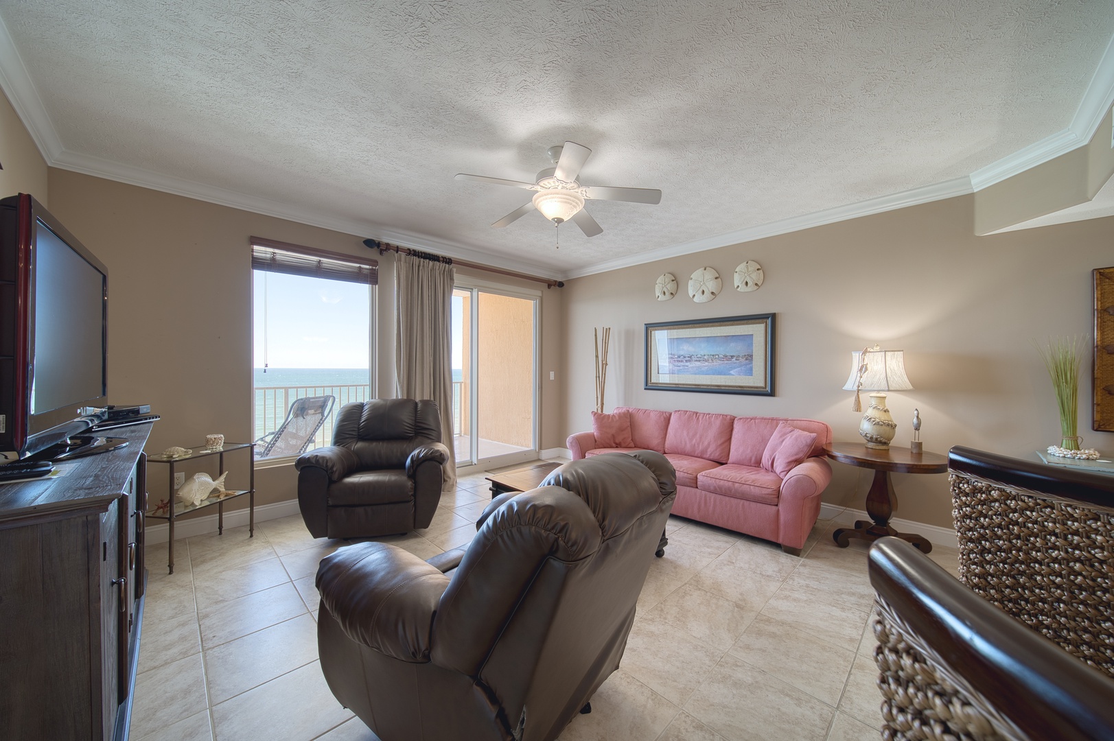 From the main living space or the primary bedroom, you can step out onto your private balcony. There, you can start your day with coffee and in the evenings it’s Panama City Beach’s best vantage point for stunning sunsets evening after evening.